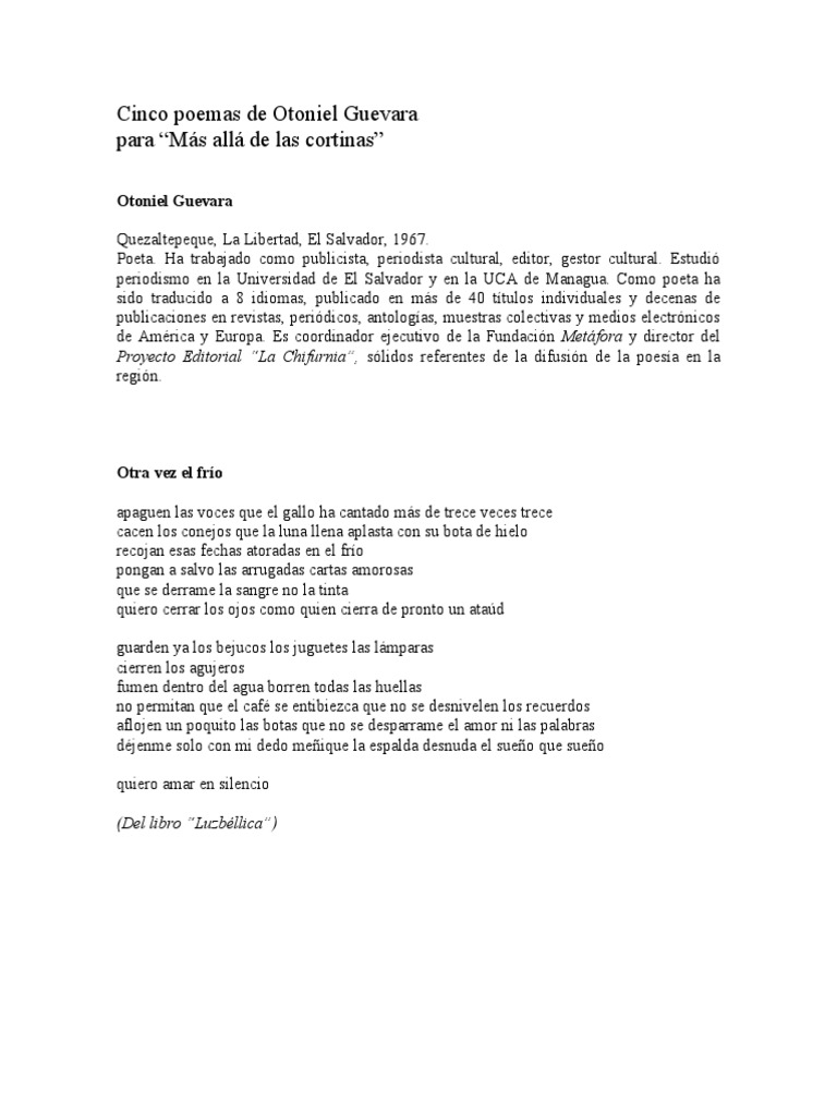 Otoniel guevara (el salvador, 1967). Otoniel guevara ретвитнул(а) hector menjivar. Stream tracks and playlists from otoniel on your desktop or mobile device. Estoy privado de la libertad porque caí en. Desde el año 1984 ha participado en certámenes nacionales e internacionales, entre ellos el festival internacional de poesía de medellín en 1999.